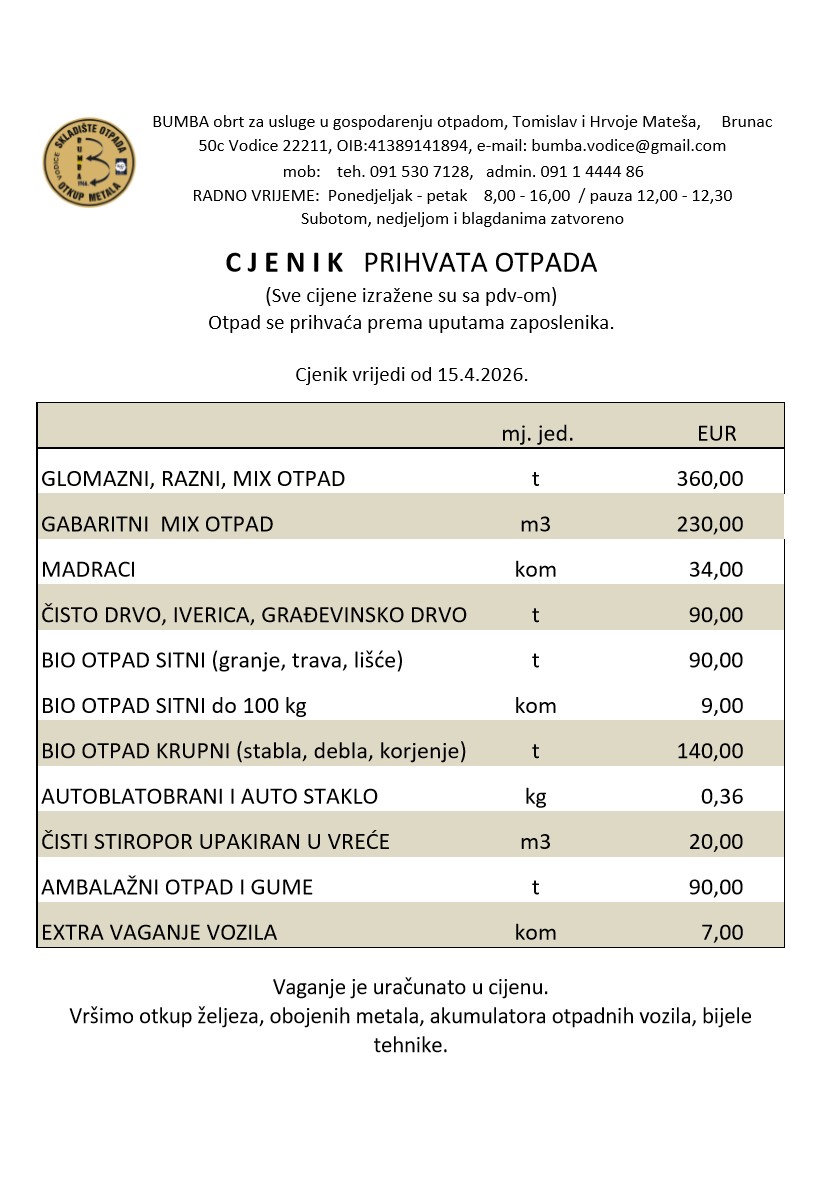 BUMBA obrt za usluge u gospodarenju otpadom,